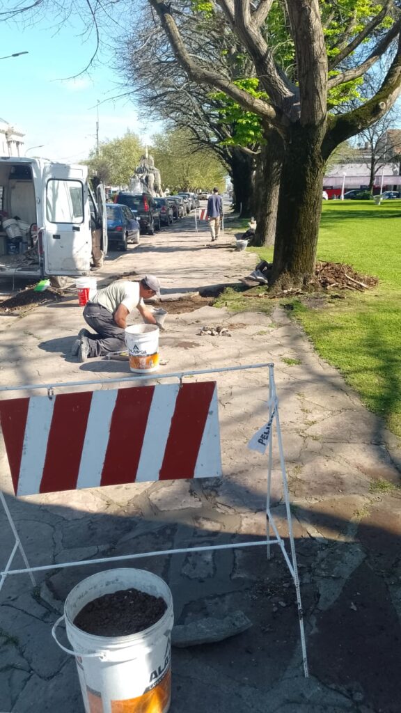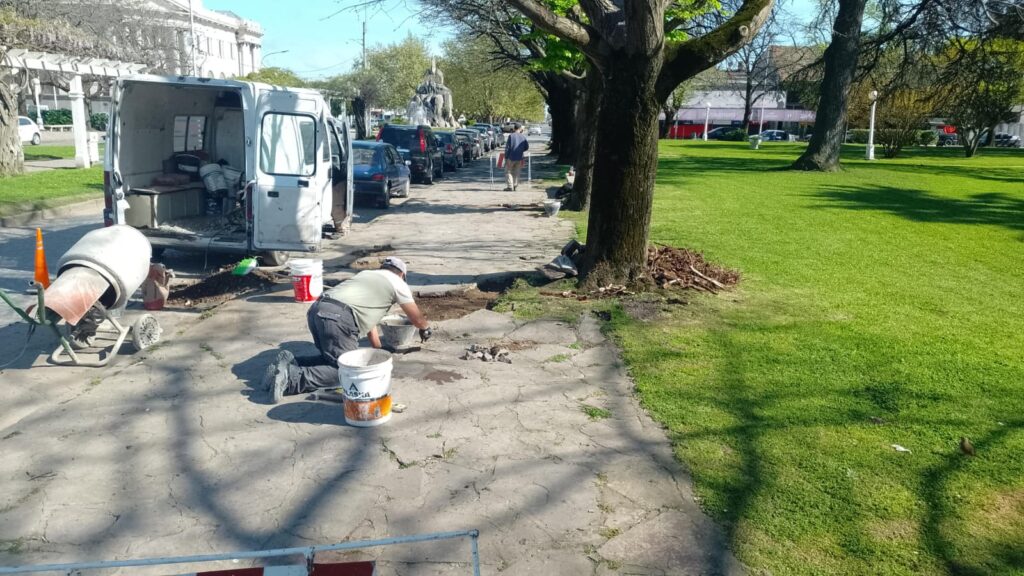 Por otra parte, se inició esta mañana la reparación y mejorado de las veredas que se encontraban deterioradas o levantadas como consecuencia del crecimiento de raíces.