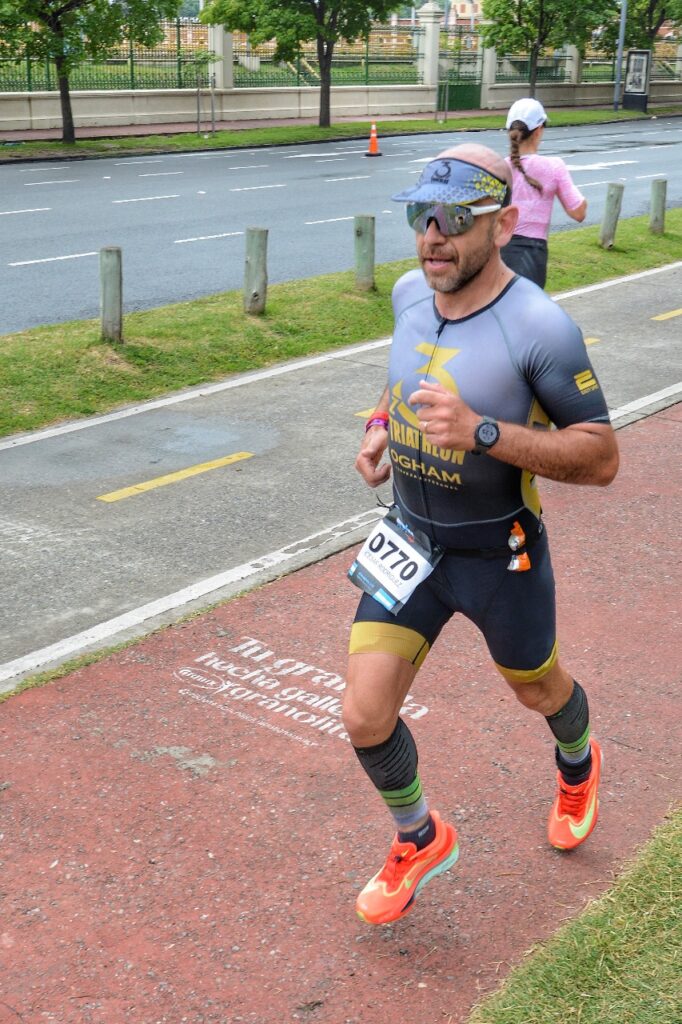 El triatlón de media distancia comenzó con 1.900 metros de natación en el lago de Palermo, para luego realizar 90 kilómetros de ciclismo en una exigente ruta y se cerró con 21 km de pedestrismo en un trazado plano.
