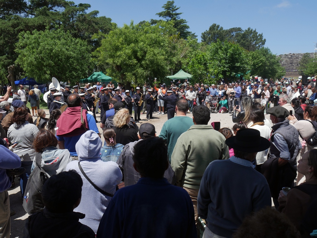 En cambio, el domingo el inicio del acto protocolar debió postergarse debido a la inestabilidad climática, teniendo en cuenta las lluvias producidas durante la madrugada. Esta situación también retrasó el comienzo del desfile. Aun así, y pese a la tarde ventosa, la concurrencia permaneció firme, respaldando con entusiasmo cada presentación musical y las distintas expresiones culturales previstas.