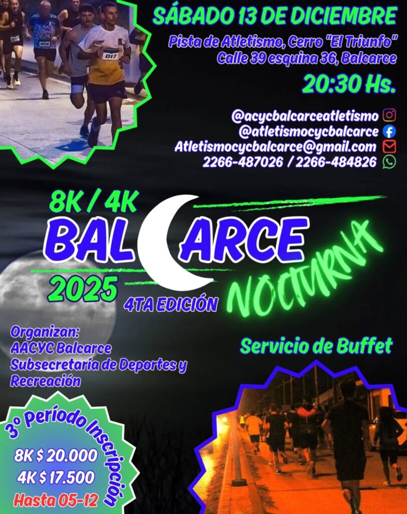 La Escuela de Atletismo AACYC Balcarce -con la colaboración de la Subsecretaria de Deporte y Recreación-, se encuentra organizando la cuarta edición de Balcarce Nocturna que se concretará el  sábado 13 de diciembre, a las 20.30.