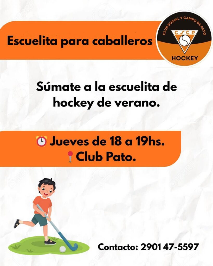 El área de Hockey del Club Social y Campo de Pato se encuentra organizando la escuelita para caballeros que estará funcionando durante el verano. Los interesados podrán recibir más información escribiendo al número (2901) 475597.