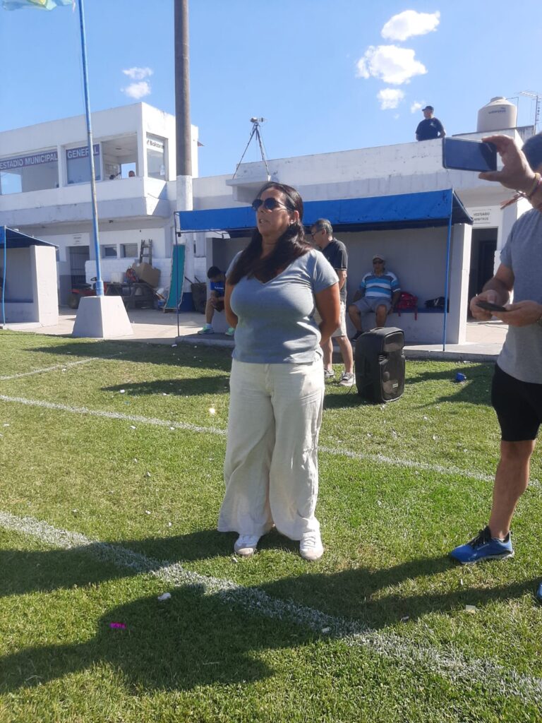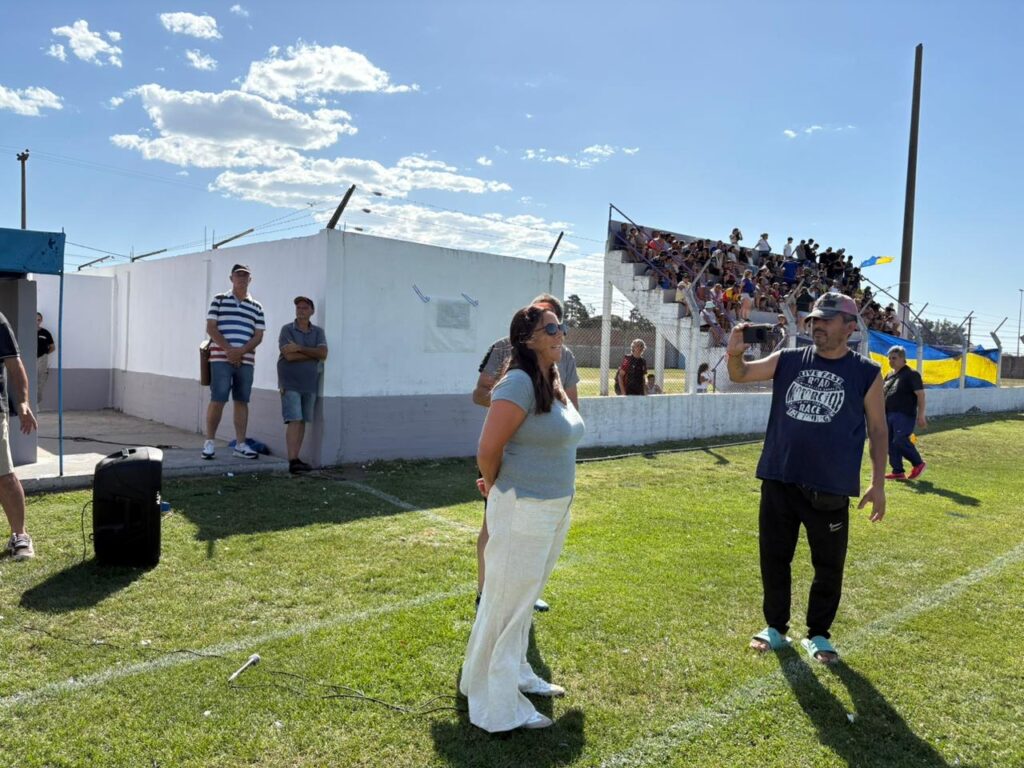 Durante el acto, Soledad Vivio destacó el trabajo sostenido que se viene desarrollando para poner en valor el predio. Señaló que, en el año del 160° aniversario del distrito, se llevaron adelante tareas de pintura, mejoras en la cabina de transmisión y el recambio del tanque de agua, además de proyectarse la reconstrucción de un sector del muro perimetral que generó inconvenientes en distintas jornadas. En ese sentido, remarcó el compromiso diario de la Subsecretaría para fortalecer no solo el fútbol, sino todas las disciplinas deportivas, con el objetivo de ofrecer mejores condiciones para la práctica y el desarrollo del deporte local.