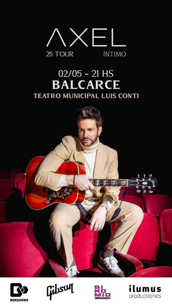 Ya en mayo, el reconocido cantante Axel actuará el sábado 2, a las 21. Las entradas estarán disponibles en boletería y mediante boxshows.com.ar, con valores desde 50.000 pesos en pullman y 60.000 y 70.000 pesos en platea, sin numerar.