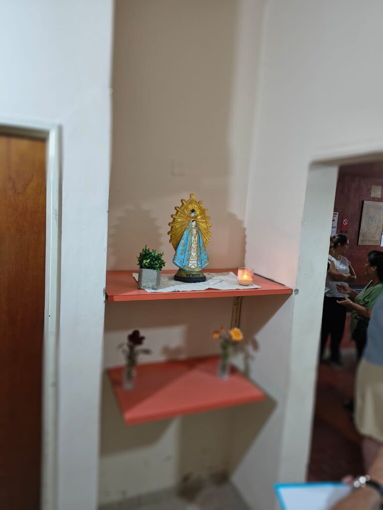 El oratorio fue acondicionado en un sector que anteriormente funcionaba como ventanilla de Rayos, donde se retiró una pared para generar un pequeño ambiente de acceso. En ese sector, contiguo al área de donación de sangre y cercano al espacio de descanso de los choferes de guardia activa, quedó emplazada la imagen ya bendecida, para que pacientes, familiares y trabajadores puedan disponer de un momento de recogimiento.