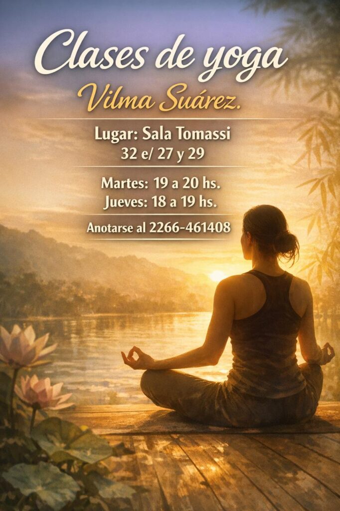 Desde la Subsecretaría de Deporte se informa que el martes 7 de abril comenzarán las clases de yoga a cargo de la profesora Vilma Suárez. Los interesados podrán inscribirse escribiendo o llamando al cel (2266) 461408.