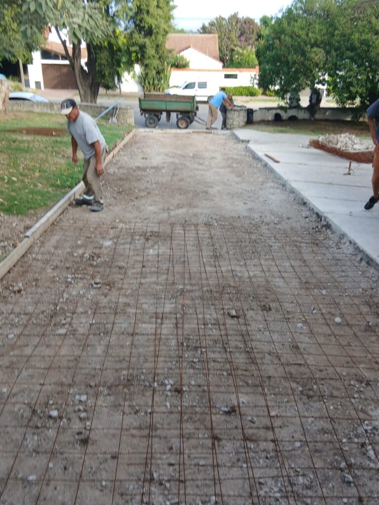 Personal a cargo de Nicolás Álvarez Quintero y Fabián Caballero llevó adelante el desmontaje de la vereda existente. Luego se colocó una malla de refuerzo y se hormigonó el sector, quedando en condiciones para su posterior reutilización.