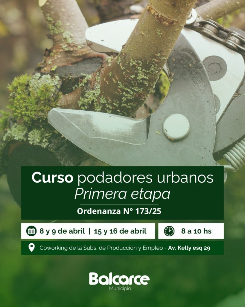 La Municipalidad informa el inicio de la primera etapa del curso de Podadores Urbanos, en el marco de la implementación del Registro de Podadores Urbanos (RPU), creado por Ordenanza N° 173/2025, con el objetivo de promover prácticas responsables y sostenibles en el manejo del arbolado urbano.