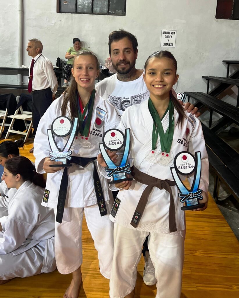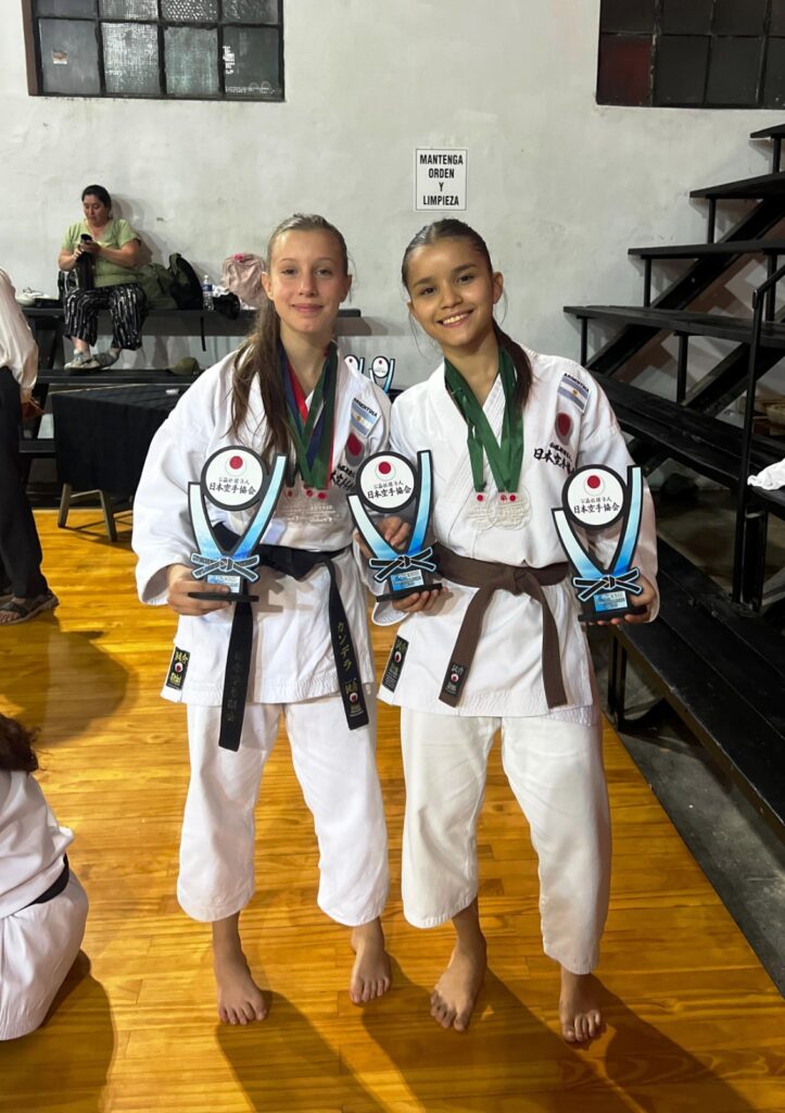 Las chicas compitieron de manera individual y en equipos femenino y mixto. En individual, Candela quedó segunda en kata y tercera en kumite (categoría 19/20 años) y Brenda quedo primera en kata (categoría 15/16 años).