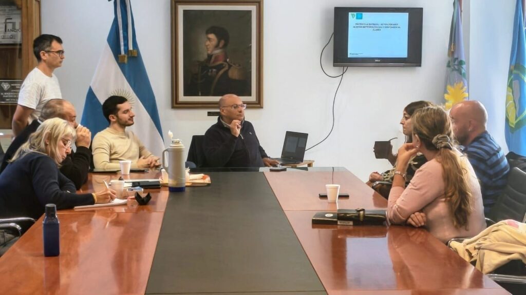 Días atrás fue elevado al intendente Esteban Reino y a la presidenta de la Comisión de Seguridad del Honorable Concejo Deliberante, Florencia Martínez, un protocolo distrital que se viene desarrollando desde hace tiempo de manera conjunta entre Defensa Civil, Jefatura Distrital de Enseñanza, y el Consejo Escolar, con el asesoramiento del especialista en meteorología Nicolás Méndez, radicado en la ciudad desde 2015, quien aporta de manera desinteresada sus conocimientos.