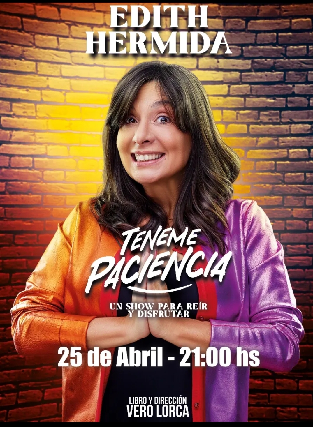 "Teneme Paciencia" con Edith Hermida. 25 de Abril, 21:00 hs en el Teatro Municipal. Entradas en boletería, valor $20.000.
